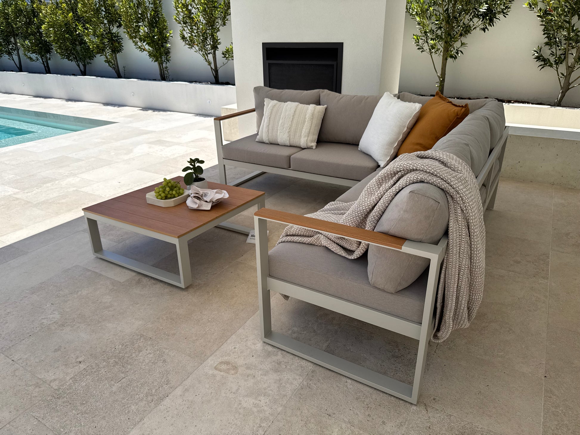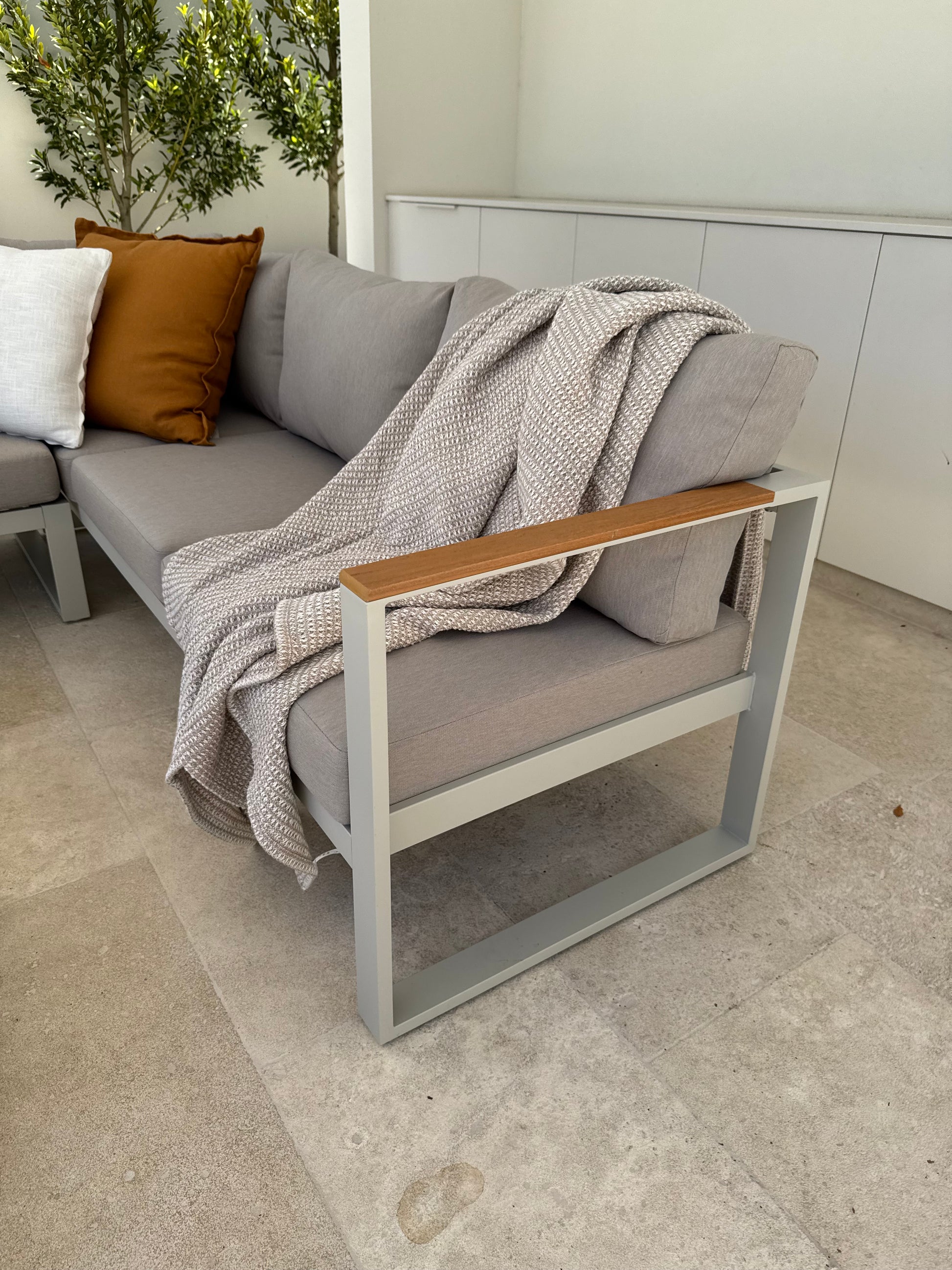 Bring a coastal, modern feel to your outdoor space. A rust-resistant aluminium frame pairs with warm polywood accents and deep, supportive cushions—made for long, comfortable lounging with easy, low-maintenance care.